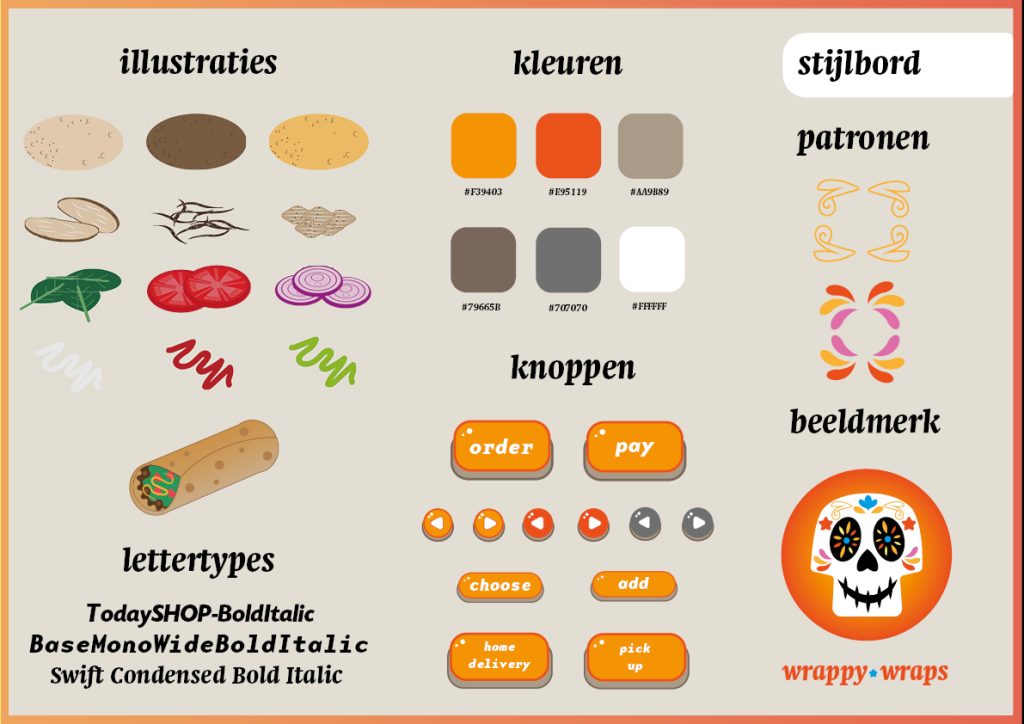 For the Food Court project, I delivered a prototype for an online ordering app. I created an ordering app for the made up Mexican company ”Wrappy Wraps”.
